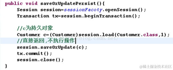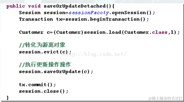 法,如果是游离对象就用update方法,如果是持久化对象就直接返回。