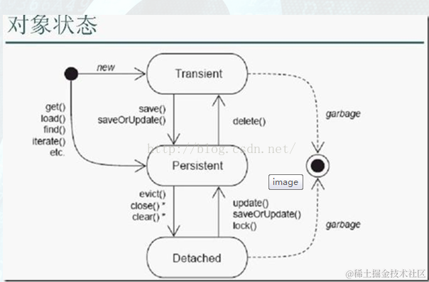 4、游离态(Detached)和瞬时态(Transient)的对象由于没有被session管理会在适当的时机被java的垃圾回收站(garbage)回收.