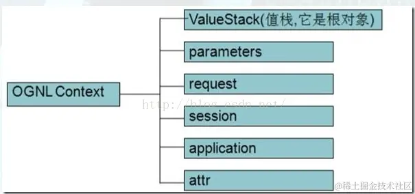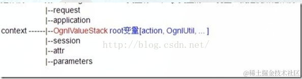 当Struts2接受一个请求时,会迅速创建ActionContext,ValueStack,action 。然后把action存放进ValueStack,所以action的实例变量可以被OGNL访问。访问上下文(Context)中的对象需要使用#符号标注命名空间,如#application、#session,另外OGNL会设定一个根对象(root对象),在Struts2中根对象就是ValueStack(值栈) 。如果要访问根对象(即ValueStack)中对象的属性,则可以省略#命名空间,直接访问该对象的属性即可。