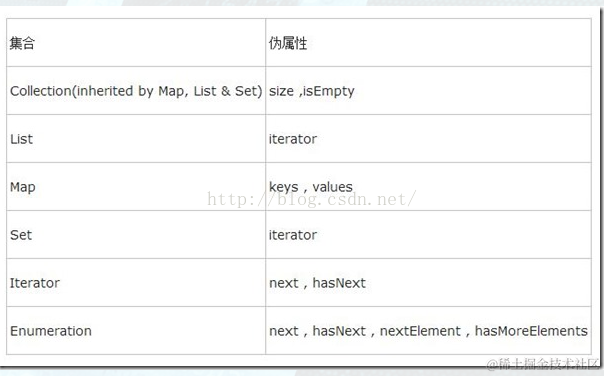 OGNL能够引用集合的一些特殊的属性,这些属性并不是JavaBeans模式,例如size(),length()等等. 当表达式引用这些属性时,OGNL会调用相应的方法,这就是伪属性.