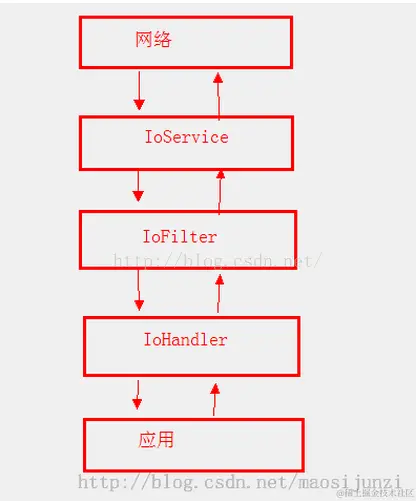 IoHandler:处理器。它是链接应用和IoFilter的桥梁,是进行业务处理的,从IoFilter出来的数据会发到IoHandler中处理。