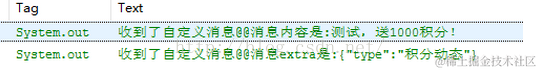 System.out.println("收到了自定义消息@@消息extra是:"+ extra);