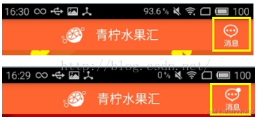 2、怎样实现手机淘宝首页中的效果,即下图所示,当没有新消息的时候,消息图标正常,当有消息的时候,消息图标上面显示一个小点,或者显示未读消息的数量?