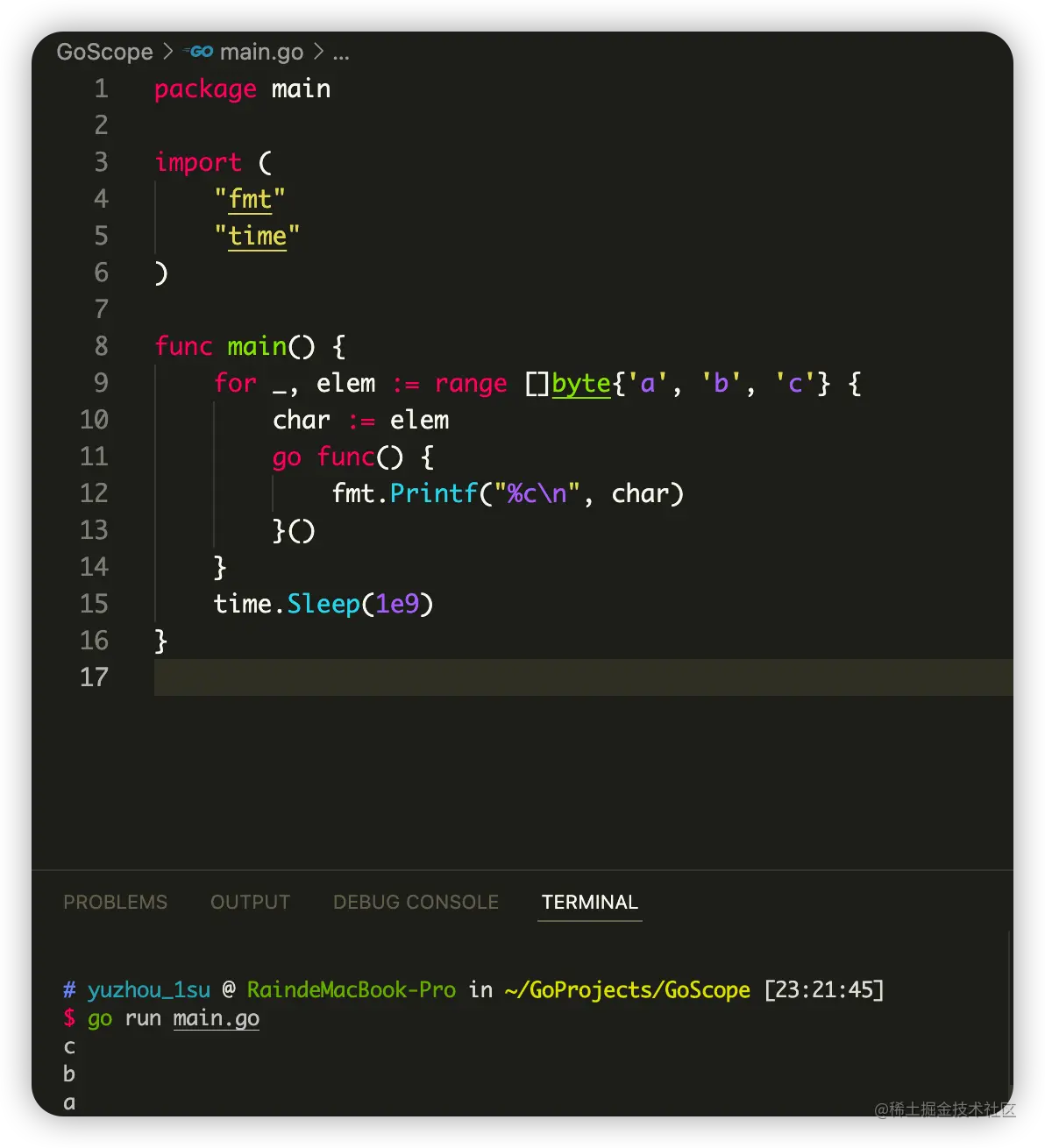 当我们复制变量时,我们创建一个新变量并将 elem 的值分配给它。我们在每次迭代中都这样做,这意味着对于每个步骤,我们都会创建一个新变量,goroutine 会引用该变量。每个 goroutine 都有一个对不同变量的引用,并且它也可以正常工作。