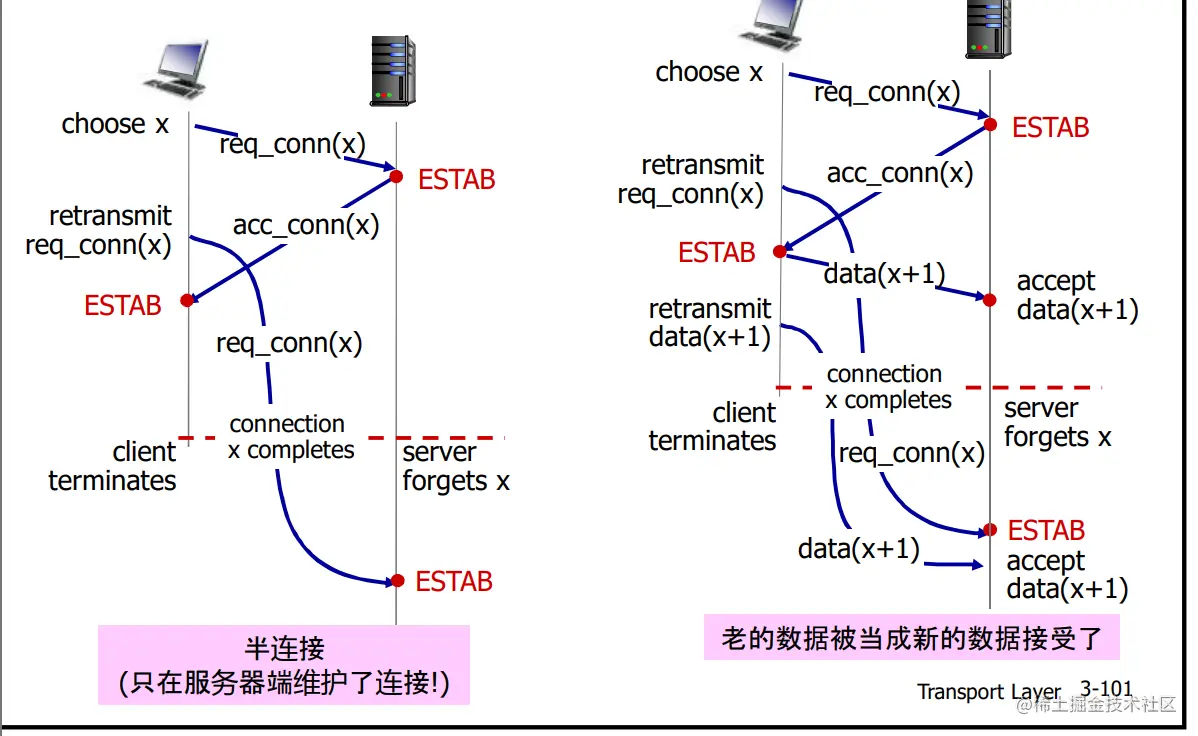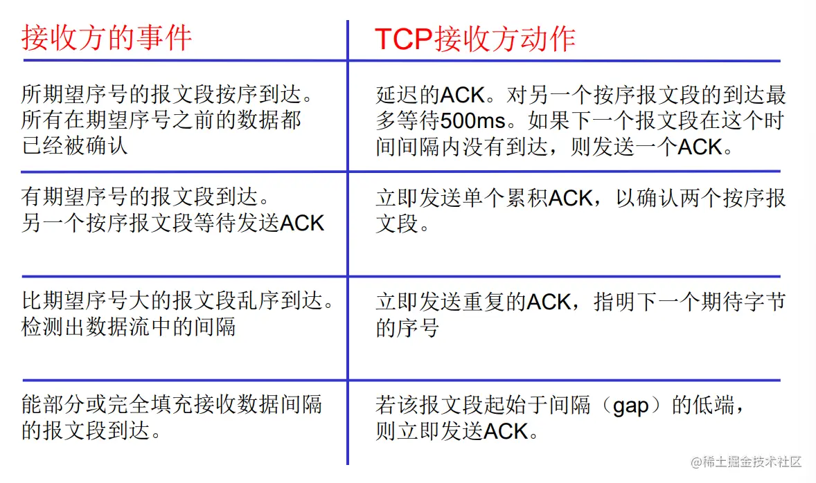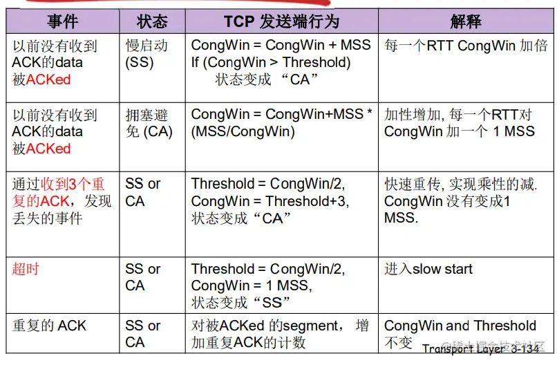 - 3个重复的ACK表示网络 还有一定的段传输能力