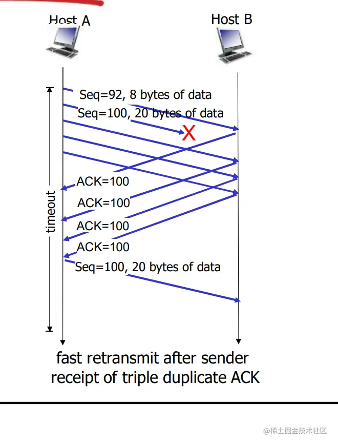 当收到==3个重复的ACKs:==