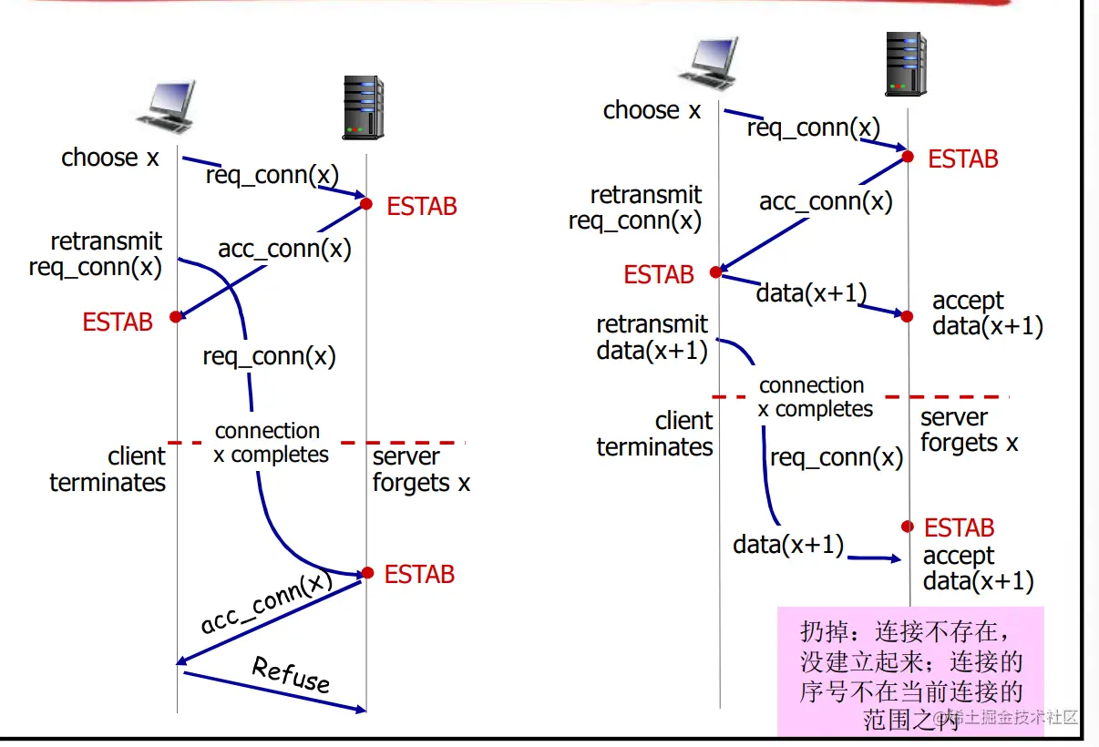 - TCP:面向连接的可靠传输