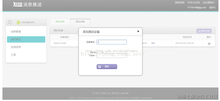 友盟开发者账号的注册地址:www.umeng.com/users/sign_…