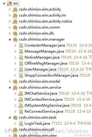 manager包留下主要是一些管理组件,包括联系人管理,消息管理,提醒管理,离线消息管理,用户管理,xmpp连接管理