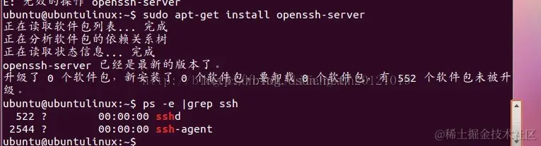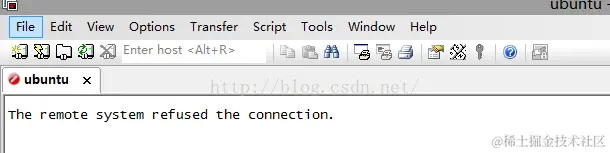 如何解决secureCRT里面的The remote system refused the connection. chenyu 2022-04-25 333 阅读1分钟 不废话,先爆照 Ubuntu缺省安装了openssh-client,所以在这里就不安装了,如果你的系统没有安装的话,再用apt-get安装上即可。 然后确认sshserver是否启动了: ps -e |grep ssh 如果只有ssh-agent那ss