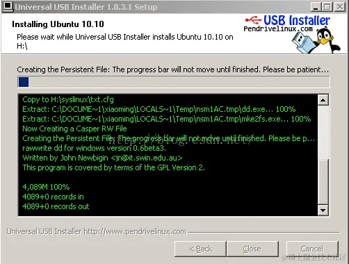 2、制作U盘启动盘,需要格式化U盘,点击“是(Y)”,会格式化U盘数据,然后开始刻录Ubuntu系统。\