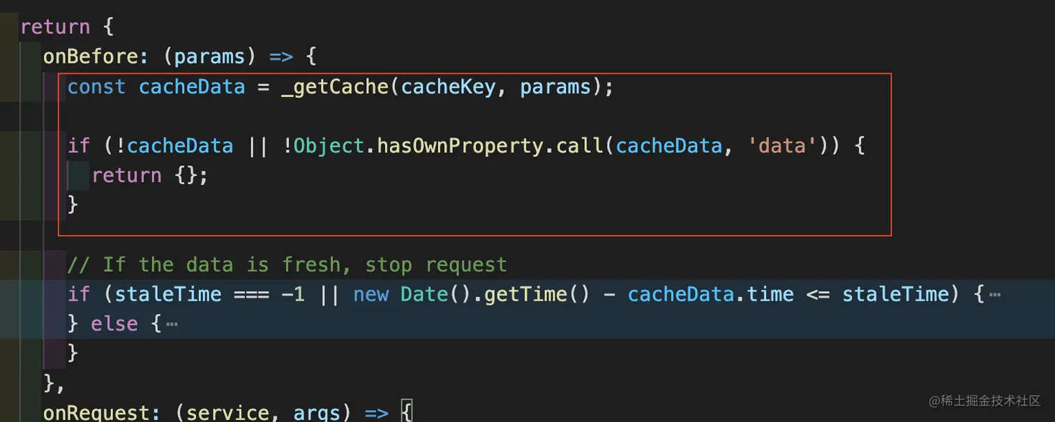 // 只接收了 cacheKey / cacheTime / staleTime / setCache / getCache