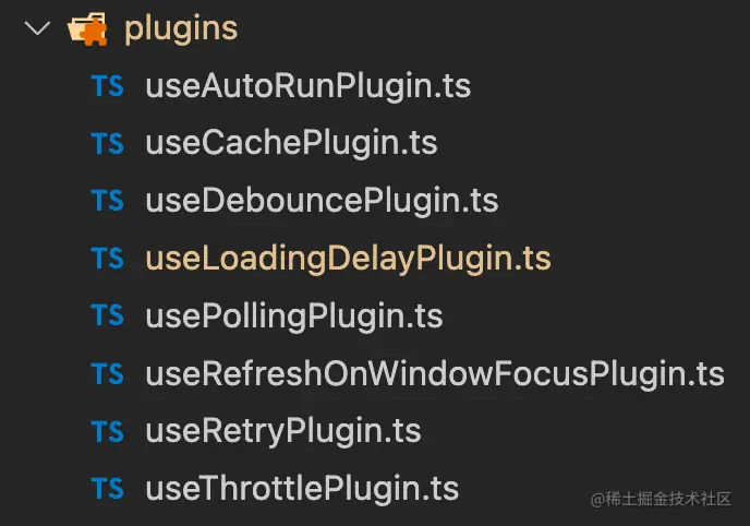 useRequest 内除基础功能以外的附加功能,都是以一个个小插件的方式进行管理的(如图红色标注部分,为插件管理的逻辑),然而每一个插件功能,又是一个 hooks: