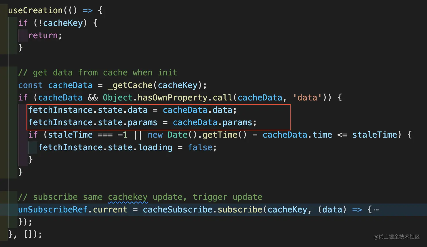 unSubscribeRef.current = cacheSubscribe.subscribe(cacheKey, (data) => {