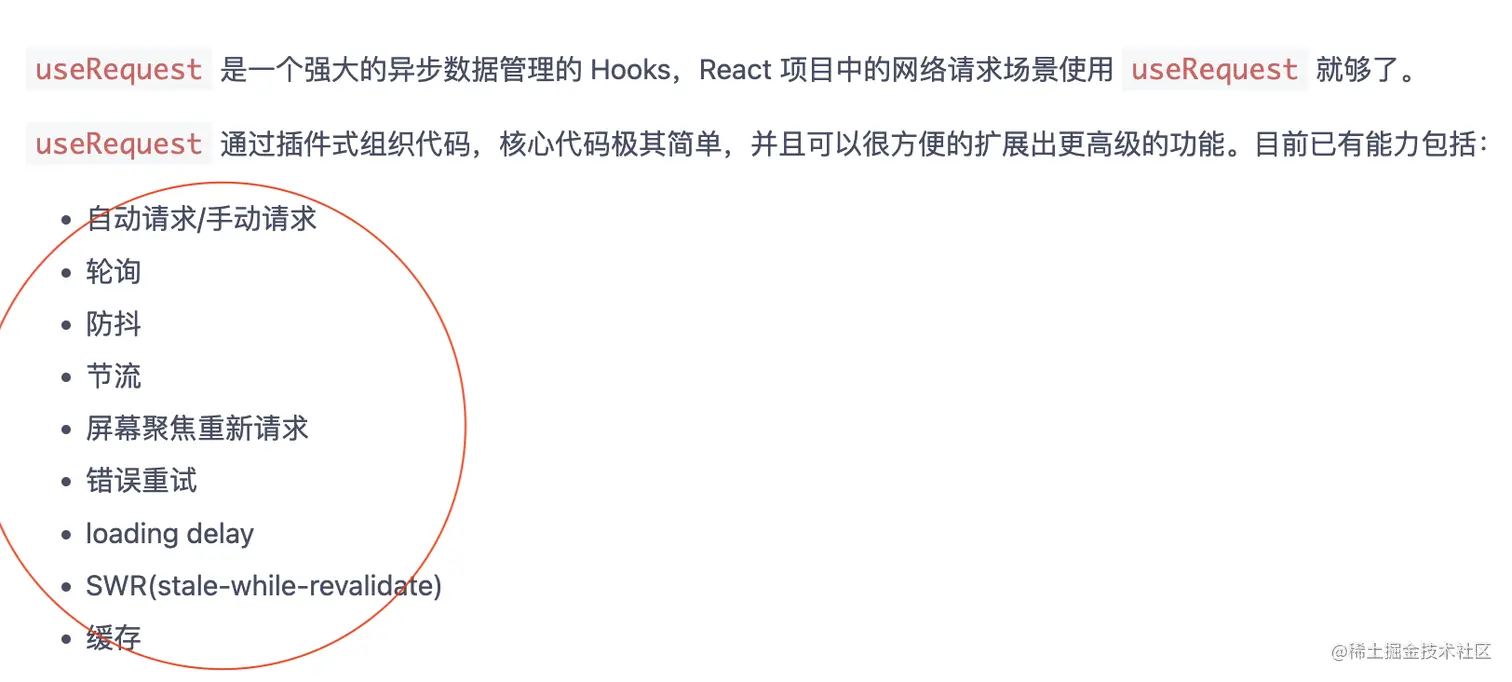 因此不仅仅是针对一个异步操作过程的简单封装,甚至可以丰富更多的功能,比如 useRequest 提供的: