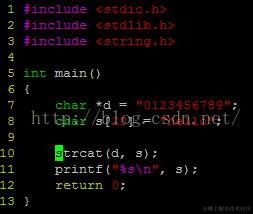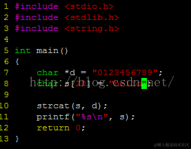 把字符串加到指针所指的字串上去,出现段错误,本质原因:*d="0123456789"存放在常量区,是无法修的。而数组是存放在栈中,是可以修改的。两者区别如下: