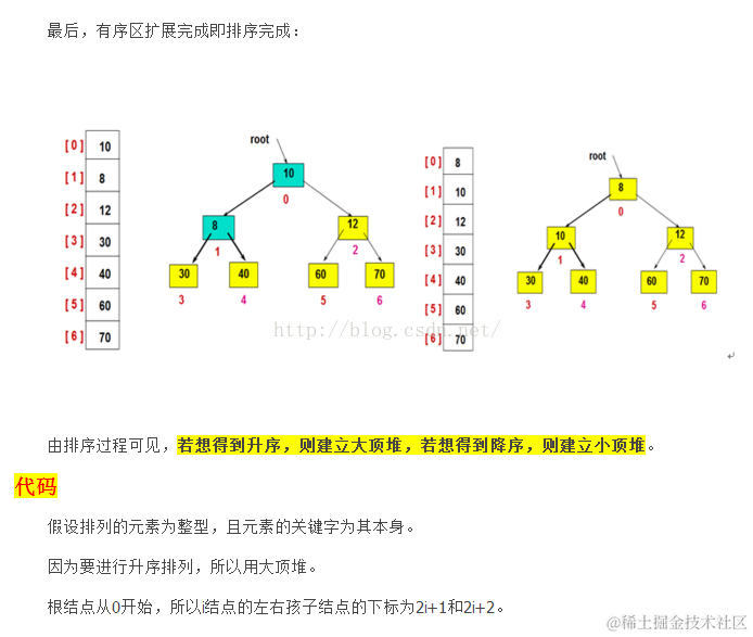 堆排序在最坏的情况下,其时间复杂度也为O(nlogn)。相对于快速排序来说,这是堆排序的最大优点。此外,堆排序仅需一个记录大小的供交换用的辅助存储空间。