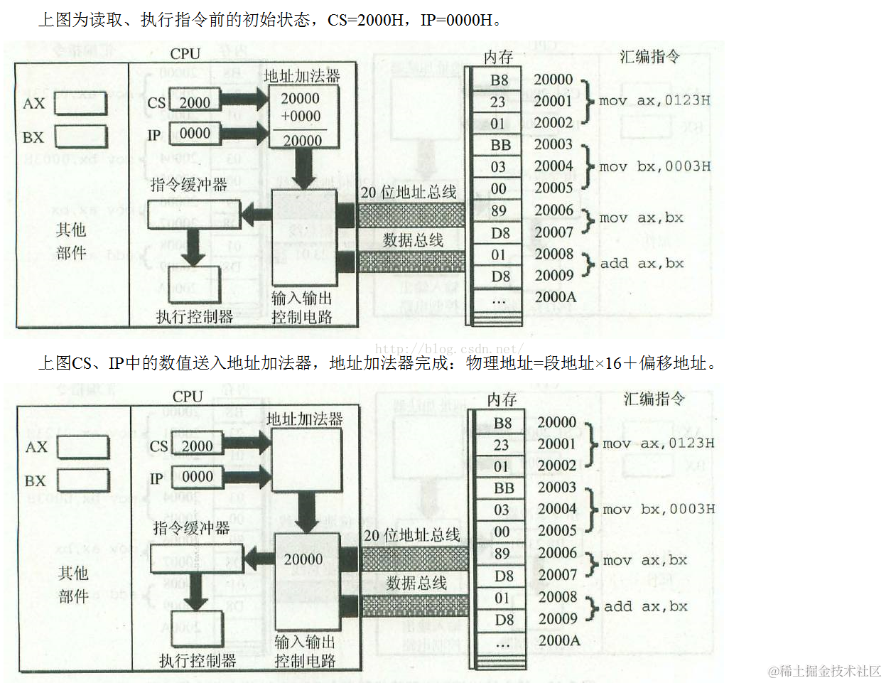 形成这个物理地址,不同的CPU可以有不同的形成物理地址的方式,我们现在讨论8086CPU是如何在内部形成内存单元的物理