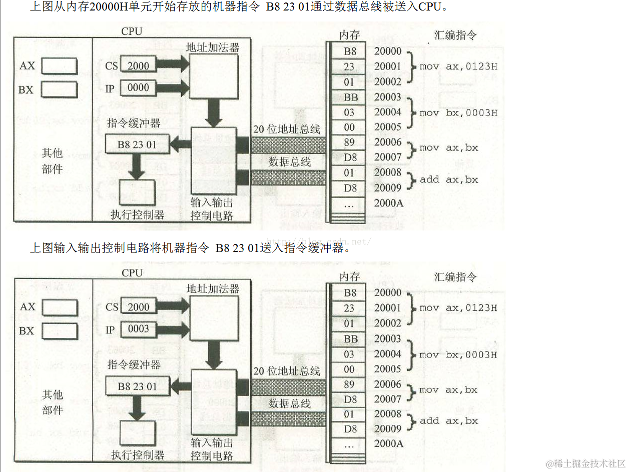 在1.5节中,我们说过,在内存中指令和数据没有任何区别,都是二进制信息,CPU在工作的时候,把有的信息看作指令,