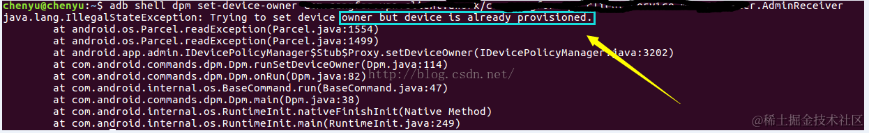 设置DeviceOwner权限是有限制的,需要手机账号(acount)为0