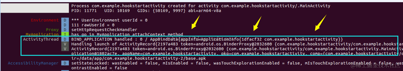 然后我点击图标调用startActivity方法后ubuntu终端打印的日志图片如下: