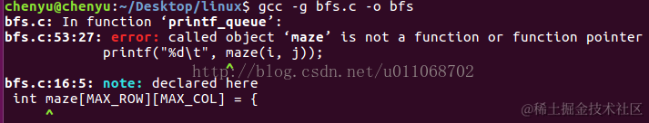 linux C语言之called object ‘maze’ is not a function or function pointer printf(“%d\t“, maze(i, j)) chenyu 2022-04-25 103 阅读1分钟 今天写广度优先搜索的时候出现了这个问题, 解决办法: 特么我傻逼了,明显是数组,我写成了mate(i, j),然后我改了写成了mate[i, j]; 特么我又傻逼了 改成mate[i][j] 就可以了