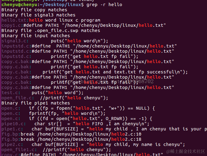 比如我们在linux上看目录下哪些关键字段,好像开发工具里面的 find usage in work ,如下图