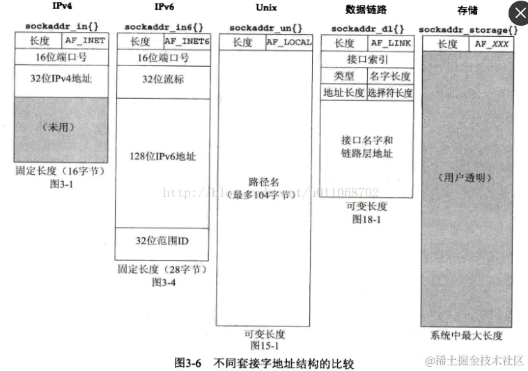 linux网络编程之一般应用采用的协议和不同套接字的地址结构以及用户进程和内核通过哪些函数传递套接字的地址结构 chenyu 2022-04-25 68 阅读1分钟 1、一般应用采用的协议 2、不同套接字的地址结构 3、用户进程和内核通过哪些函数传递套接字的地址结构 从进程到内核传递套接字的地址结构函数有3个 bind、connect、sendto函数 从内核到进程传递套接字的地址结构函数有4个函数 accept、recvfrom 、getsockname 、getpeername