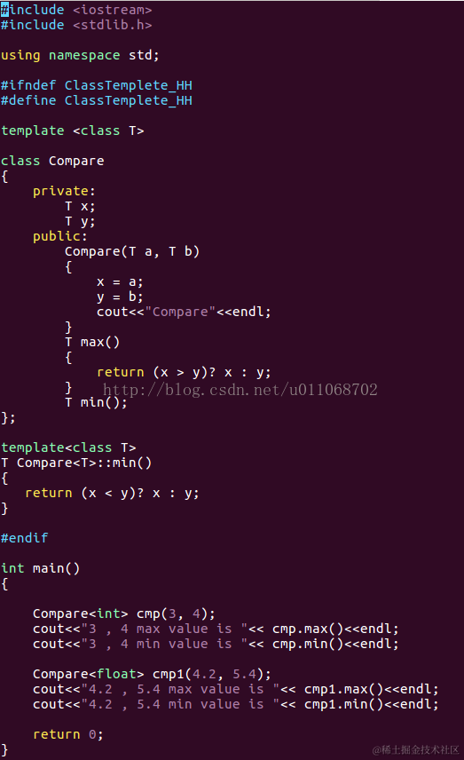 T Compare::min( ) {…} //不能这样定义类模板中的成员函数
