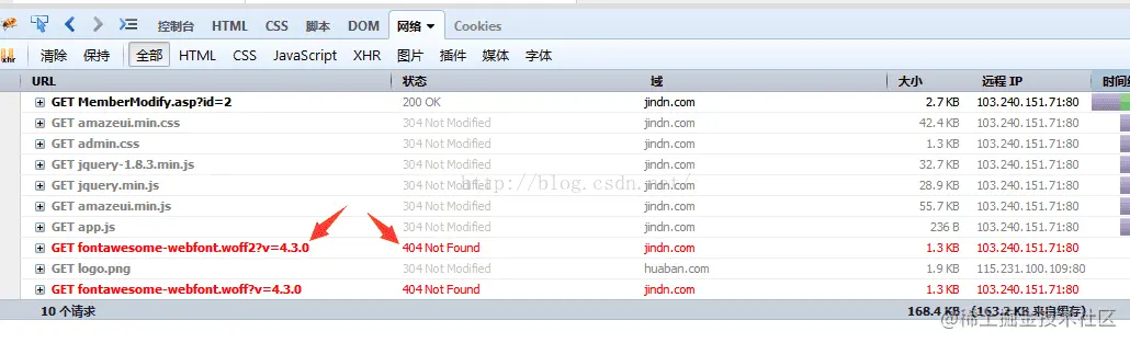 开发一个系统用了一个框架显示图标,在刷新时发现浏览器加载网页都要一直加载很久最后报404错误,通过firebug观察网络记录花了差不多30多秒,在此期间网页上的图标都是乱码。