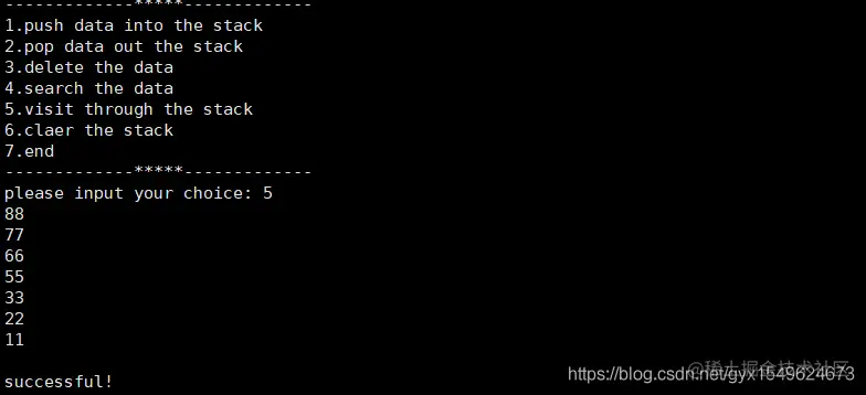 6.visit through功能 键入5,执行visitthrough操作,遍历输出栈中所有元素,截图如下:
