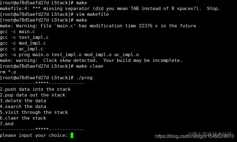 1.make 此过程遇到问题,由于代码在传输过程中,makefile中的tab居然被空格代替了,导致make命令无法运行,于是在vim命令下,重写了makefile文件,最终得以正确运行,截图如下。