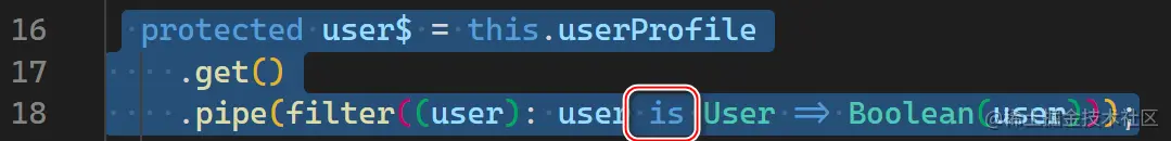 如果 isString 被调用之后,如果函数返回 true,就证明输入参数 test 确实是 String 类型,此时 TypeScript 编译器会认为被 isString 保护的这个 IF 代码块里,变量 foo 的类型一定是 string,因此可以直接使用 foo.length 访问这个字符串变量的 length 属性。