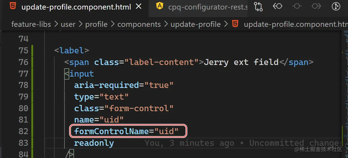 通过 formControlName 指令将 HTML 里的 input Element 同 Component 里的 FormControl 实例进行绑定。