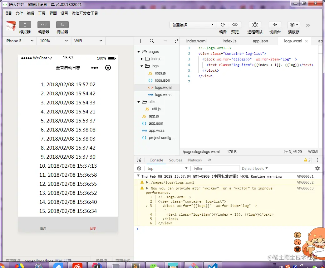 不添加wx:key情况: