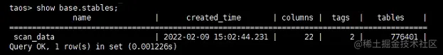我们目前使用 TDengine2.2.2.0 版本,在三台 16C 64G 的服务器上部署了集群,数据写入速度大概为每秒 2000 行。根据“一个扫描枪一张表”的模型建表,把设备的地点和站点类型设置为标签。