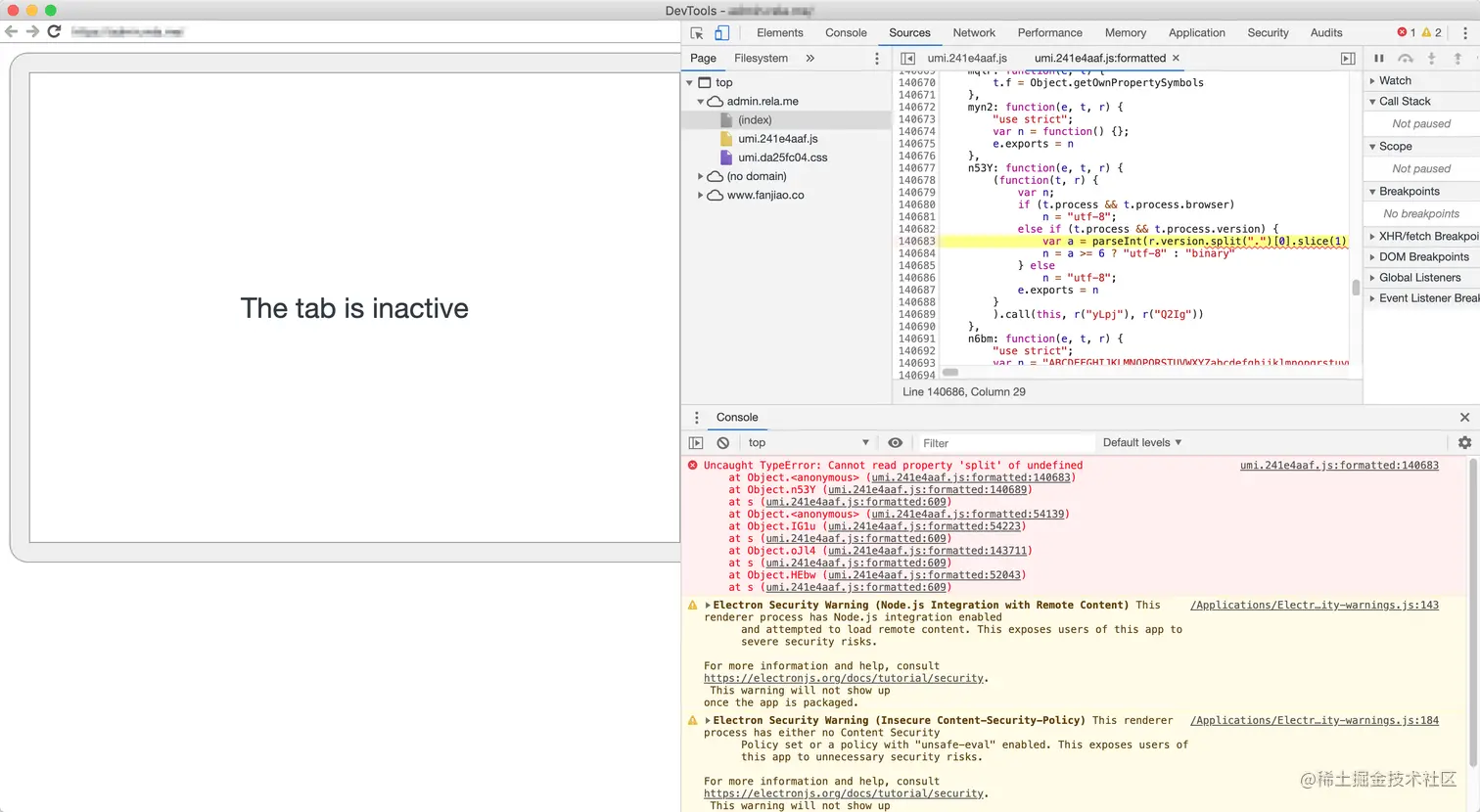 近期对 umi 做了升级,在浏览器中可以正常访问,但是放到此软件中,就会变成空白,直觉告诉我JavaScript脚本报错了。