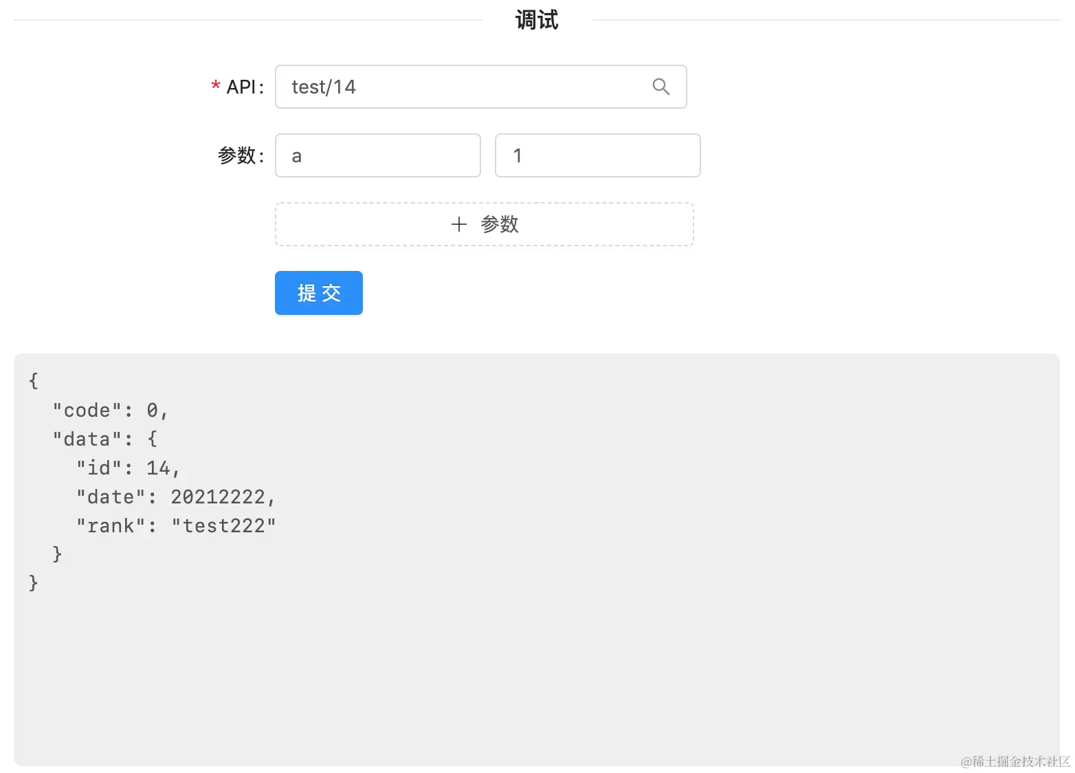 在配置化界面的最下方,就是调试部分,当接口创建完成后,就能马上调试。