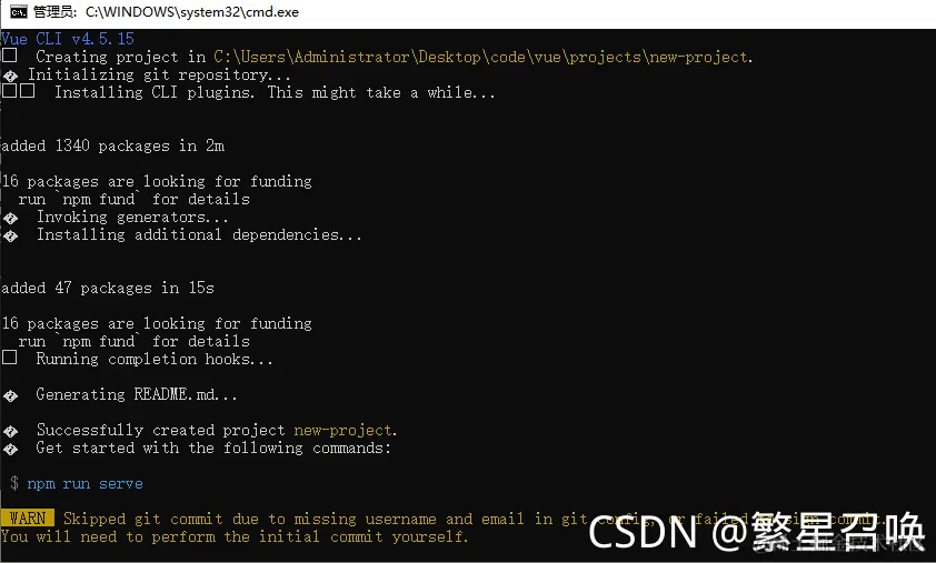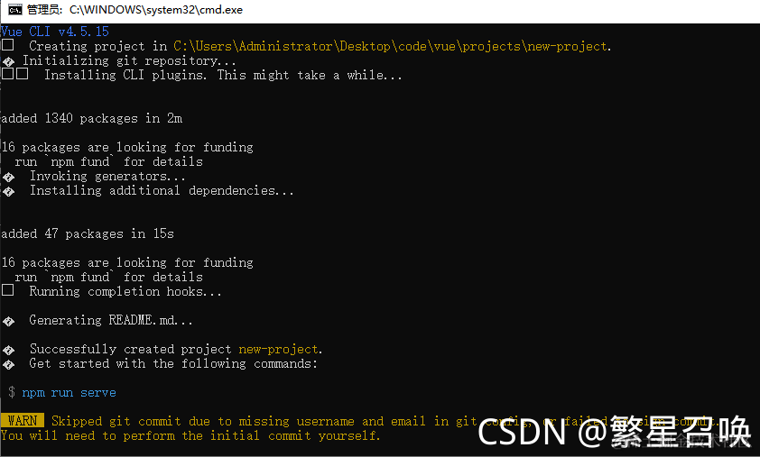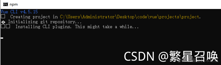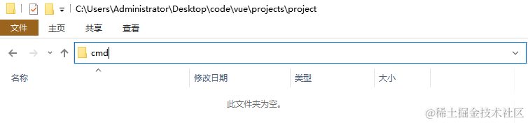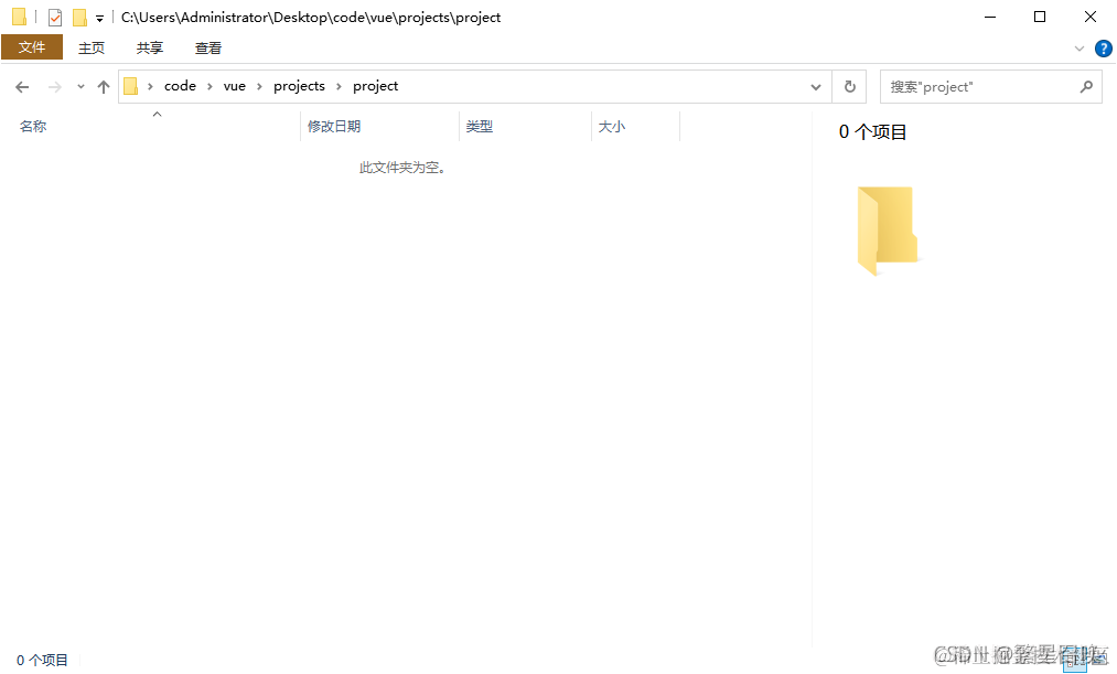 1. 首先找到创建项目的文件夹,这里使用的地址是C:\Users\Administrator\Desktop\code\vue\projects\project