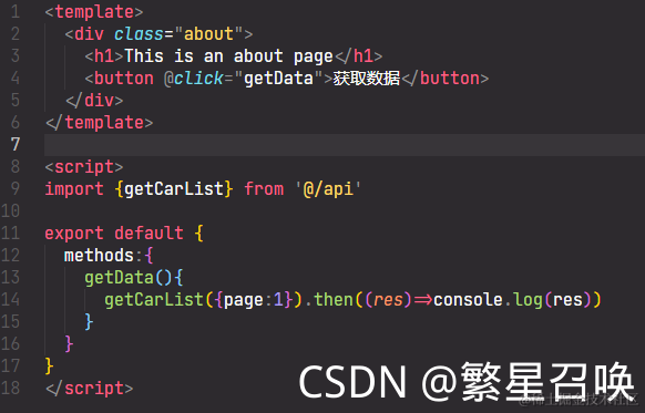 <button @click="getData">获取数据</button>
