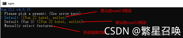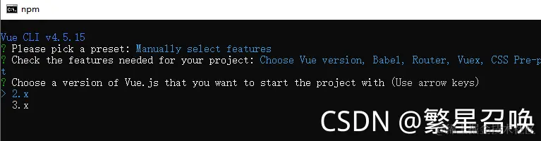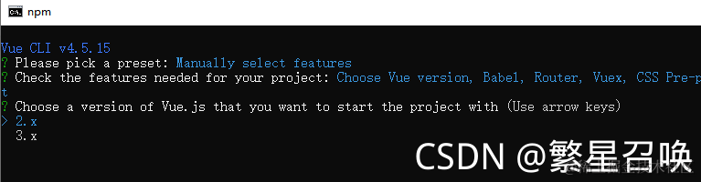 这里是根据选择的功能,选择vue版本,这里选择2.x