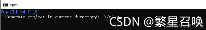 此时会显示提示,是否在当前目录中生成项目,这里输入y,然后回车