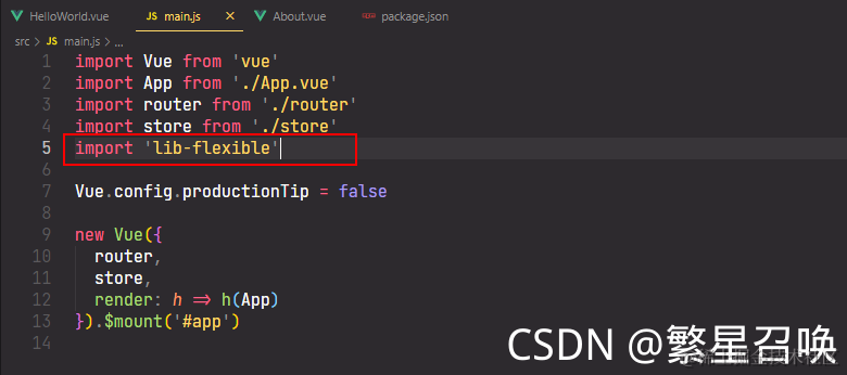 4.(在项目入口文件 main.js 里 引入 lib-flexible) import 'lib-flexible'