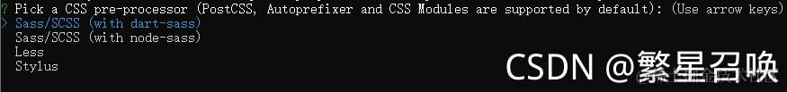 选择css预处理器,这里选择less