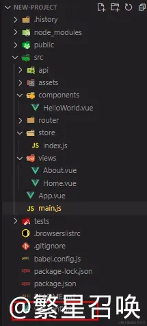 2.在src目录下创建api文件夹,里面创建 index.js 和 request.js 两个文件