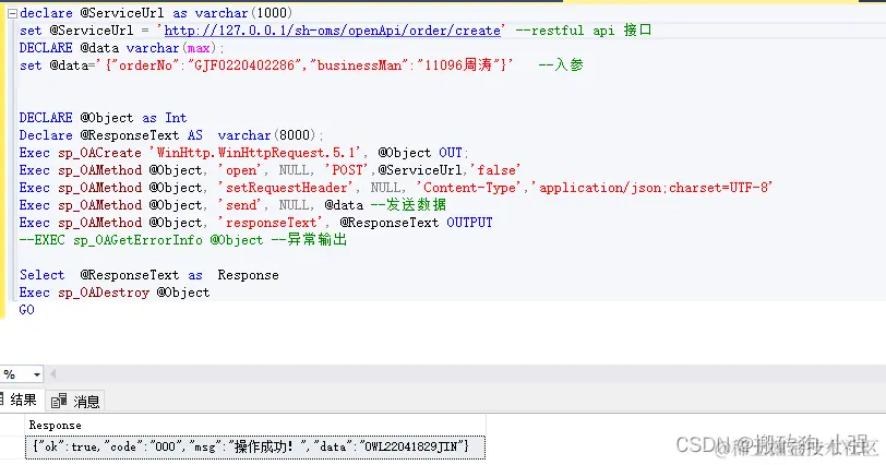 set @ServiceUrl = 'http://127.0.01/sh-oms/openApi/order/create' --restful api 接口