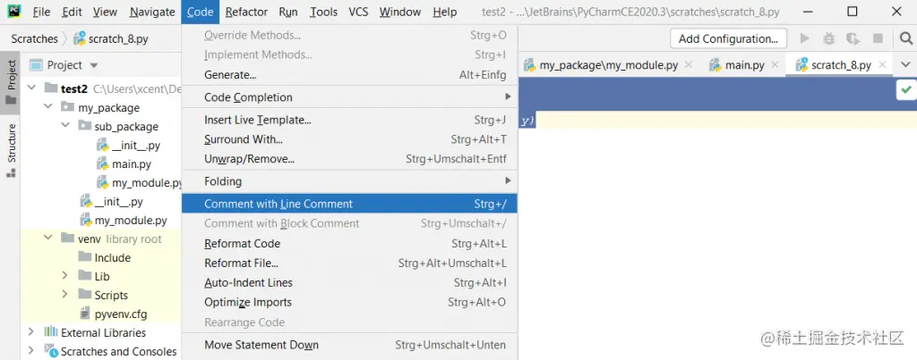要在PyCharm中对这三行进行阻断评论,用鼠标选择它们,然后点击CTRL + / ,以获得标准的英文键盘布局。