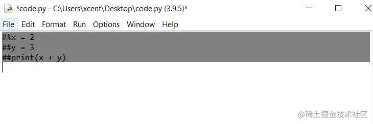 要在IDLE编辑器中对选定的行进行块状评论,请点击ALT + 3 。