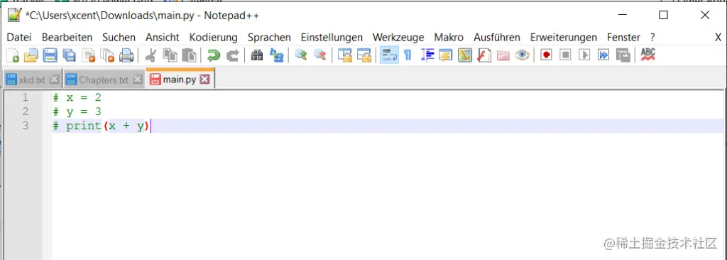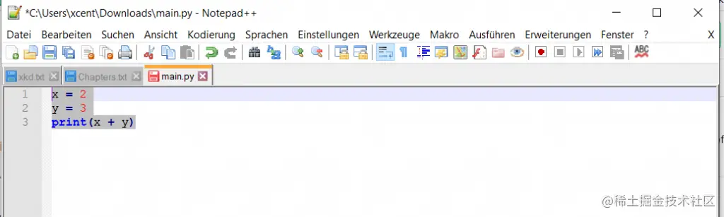 将编程语言选择为Python后,Notepad++会自动在编辑器中突出显示代码。