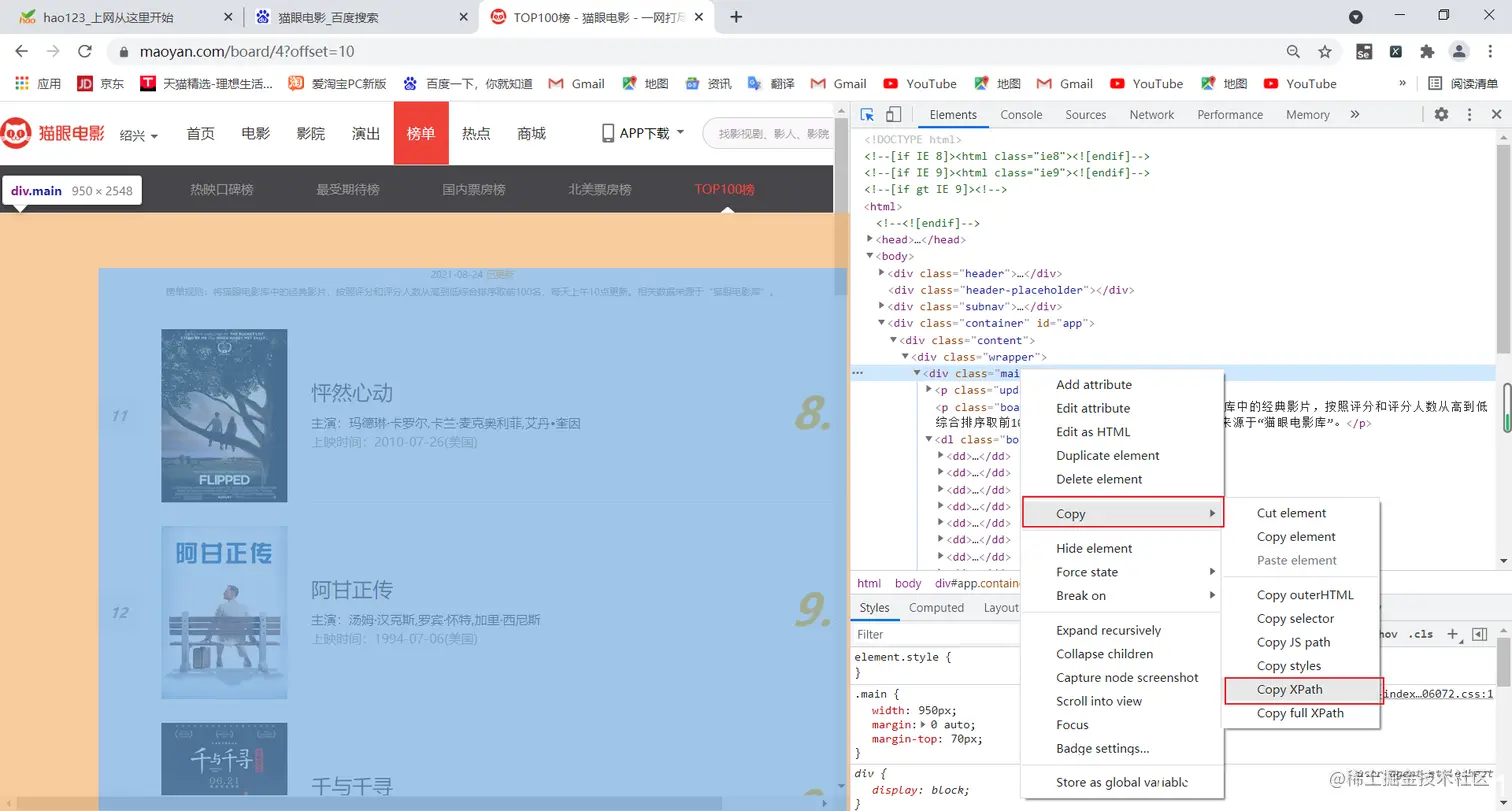 接下来就需要用到xpath语法了,当然也可以在浏览器中直接copy xpath。